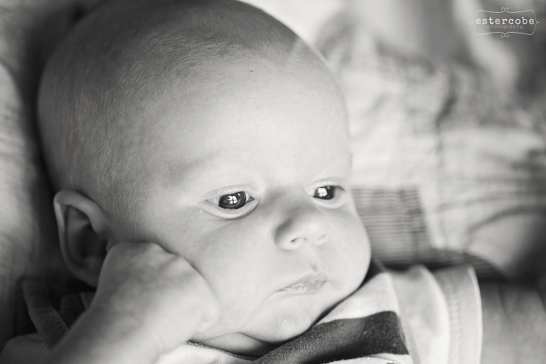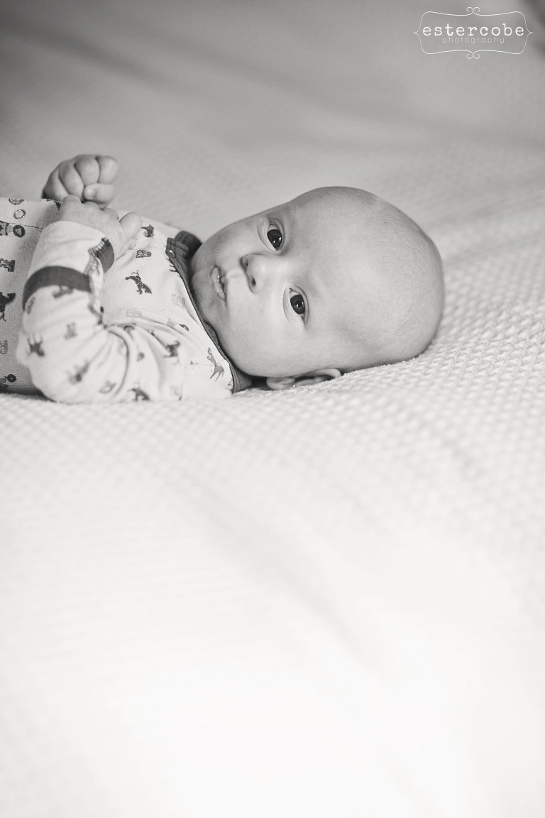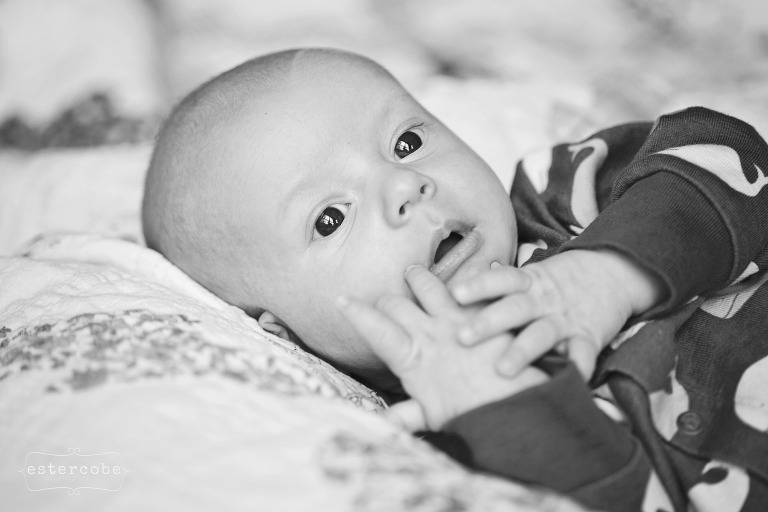 I try to take at least a photo a day of Leighton, but that doesn’t always happen. Life with a new baby is a busy one… his birth announcements are FINALLY done at two months (still need to address, stamp and mail them)! Michael has been a huge help and we are settling nicely into life as three. FYI – Having a dog first in no way prepared me for motherhood! Love, LOVE my Leighton boy – he cheers my mood when I look at him, and makes my day when he smiles at me. At month two I love the nights when he only wakes twice, and watching the many hand motions he makes while nursing. I know that sounds weird but that is pretty much my favorite thing about him. Just recently he began smiling like crazy. I think that will be my new favorite thing to watch.