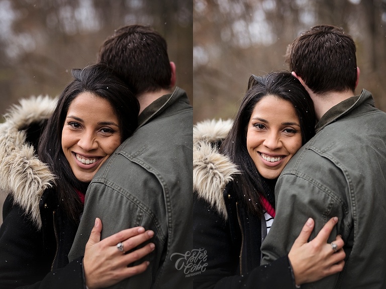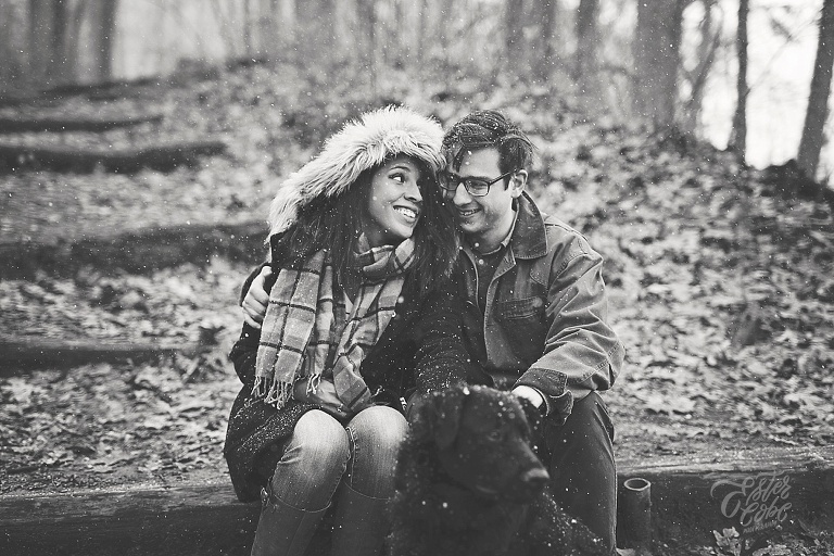 SO many fabulous images from this Ann Arbor Arb session. It was FREEEEZING cold, and of course, their love kept them warm for the hour and a half that we braved the weather. Their pup joined in the fun, as did the snow! It was fun to capture the magic of falling snow as the pair kissed and laughed…. and shivered 🙂