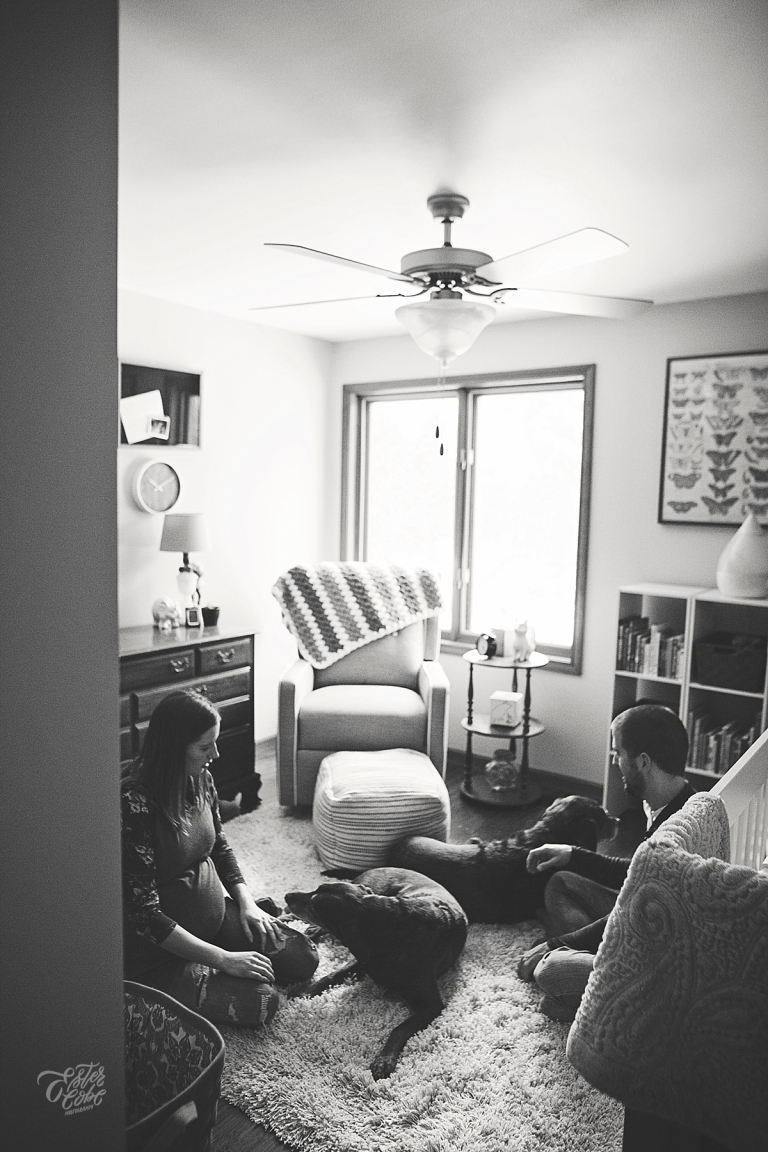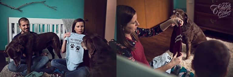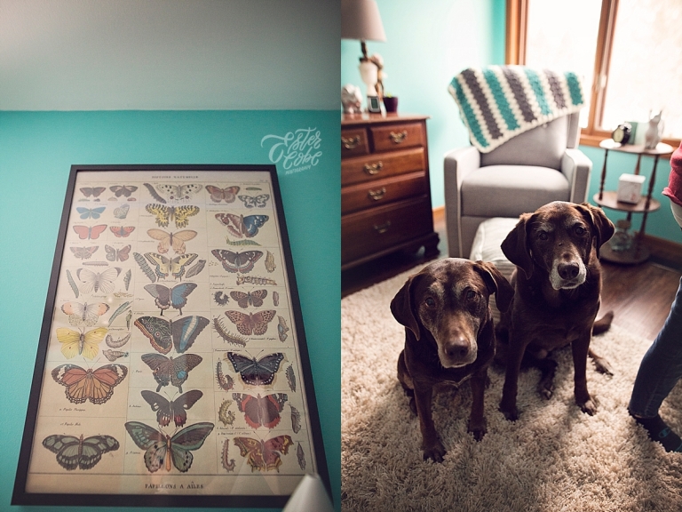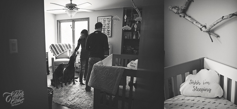 Who said big sisters don’t have tails? Two sweet chocolate labs welcomed me into their home last week for a little peak into their lives as they wait for their little brother to arrive. They were really very sweet, but curious about my camera I think! We ventured into the nursery which was super ready to go. This mama has everything set and its beautiful. Mom and dad folded bitty baby clothes, pulled out a few favorite books, and walked their precious girls outside. It was a lovely hour in the life of the Burger family. So excited to see their new little one this spring!