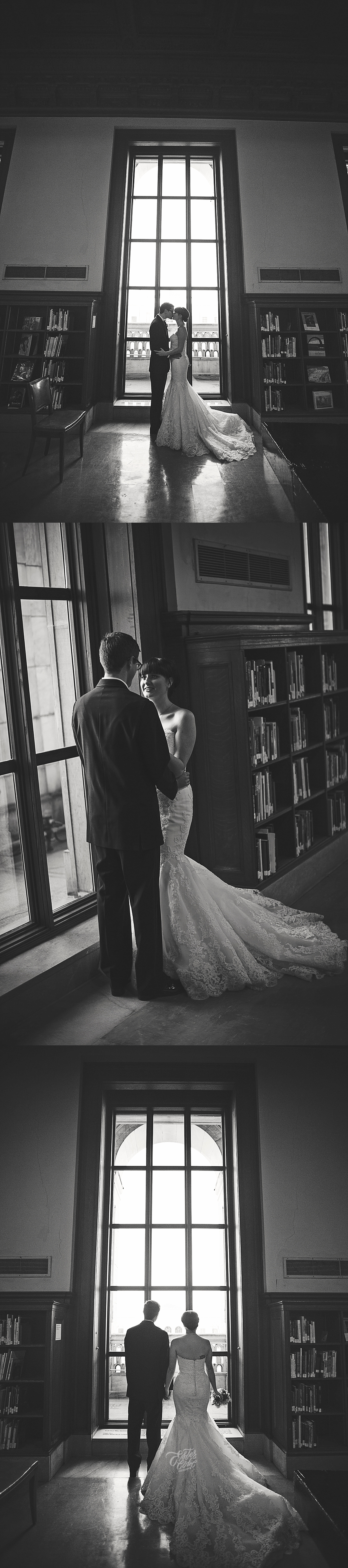 We first met via Skype, and Mel asked all the right questions. She knew what she wanted and we excitedly were a match! Several months later we met up on Belle Isle for a sunset engagement session where we saw first hand that Mel and Vinny had style and spark. Their love for Literature and history fueled their wedding day choices. We began our day with the couple at the historic Hilton Double Tree in Downtown Detroit. Each in separate rooms, with bridal prep in full swing. The guys doing a traditional toast, and the ladies finished makeup and helping Mel into her beautiful lace gown. It was a chilly November day, and the skies were bright blue which made the Cathedral of the Most Blessed Sacrament glow as the sunset just after the ceremony. We visited a few favorite places in Detroit for photographs and back to the Hilton for their wedding reception in their historic ballroom. Friends and family surrounded this couple with their love and well wishes. Various books, and vases of flowers decorated the room. Vinny’s small niece danced in the wild light show provided by the DJ, and made everyone snap a photo as she twirled in her special dress with the bride.