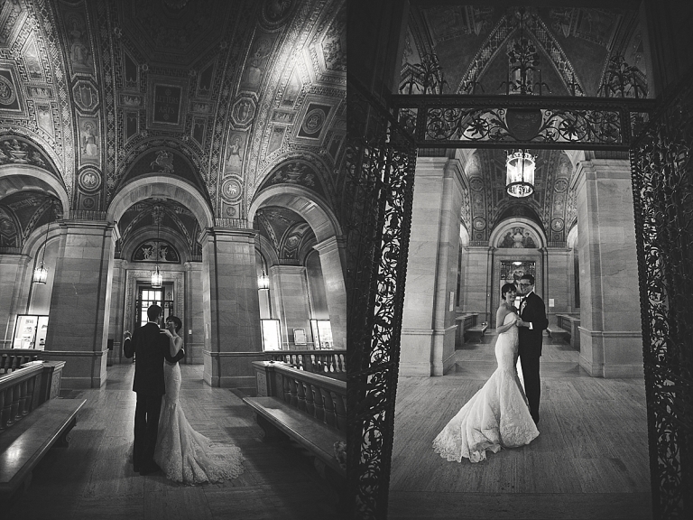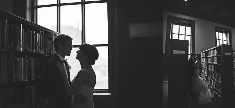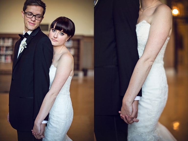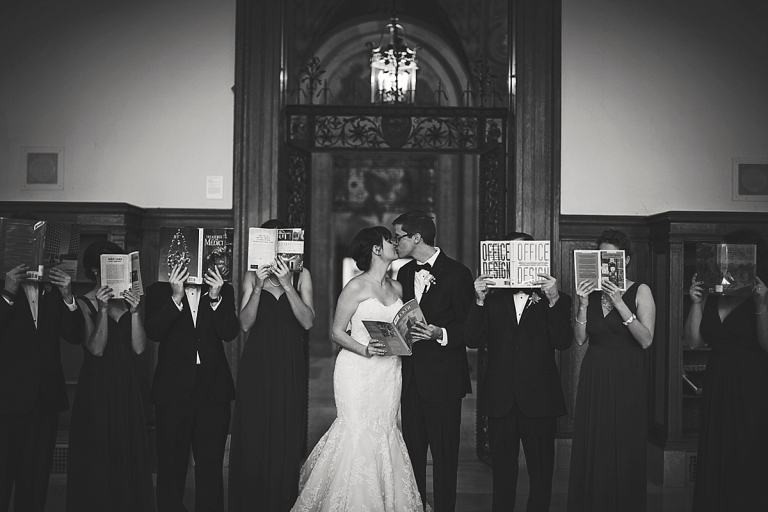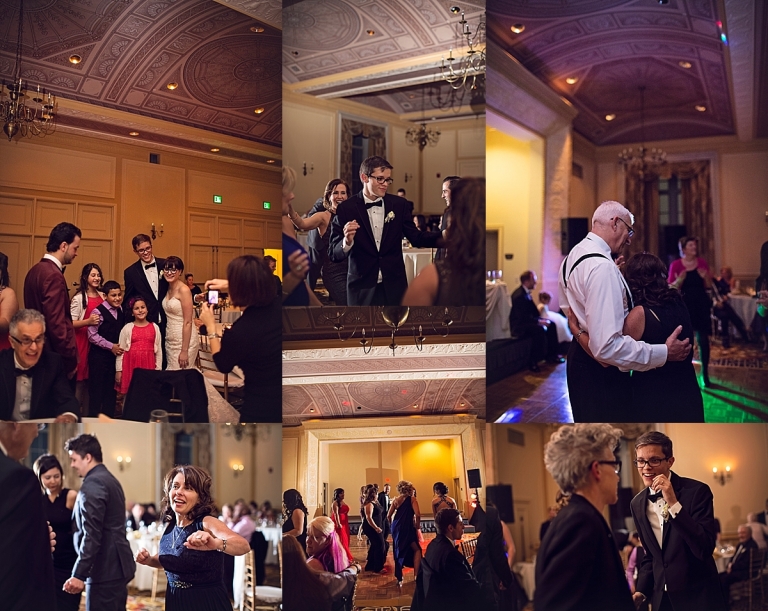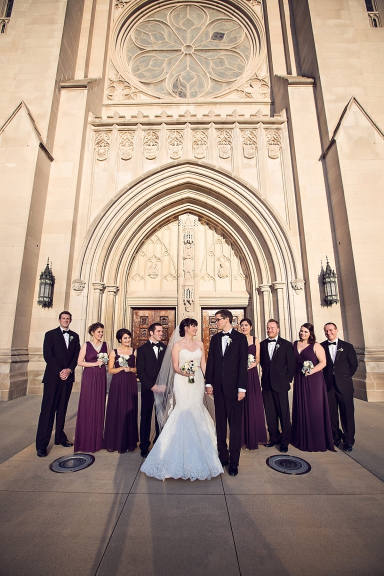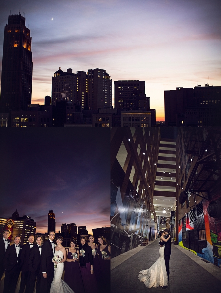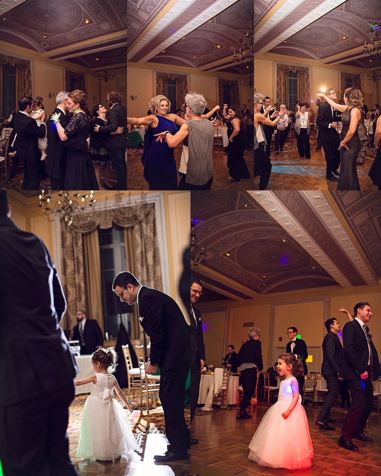 We first met via Skype, and Mel asked all the right questions. She knew what she wanted and we excitedly were a match! Several months later we met up on Belle Isle for a sunset engagement session where we saw first hand that Mel and Vinny had style and spark. Their love for Literature and history fueled their wedding day choices. We began our day with the couple at the historic Hilton Double Tree in Downtown Detroit. Each in separate rooms, with bridal prep in full swing. The guys doing a traditional toast, and the ladies finished makeup and helping Mel into her beautiful lace gown. It was a chilly November day, and the skies were bright blue which made the Cathedral of the Most Blessed Sacrament glow as the sunset just after the ceremony. We visited a few favorite places in Detroit for photographs and back to the Hilton for their wedding reception in their historic ballroom. Friends and family surrounded this couple with their love and well wishes. Various books, and vases of flowers decorated the room. Vinny’s small niece danced in the wild light show provided by the DJ, and made everyone snap a photo as she twirled in her special dress with the bride.