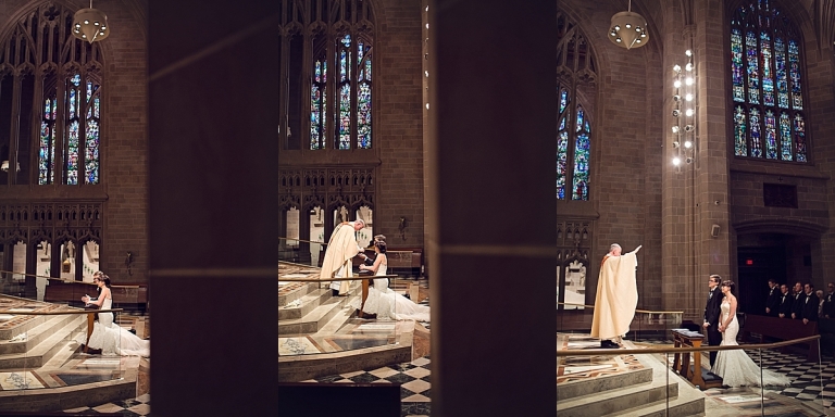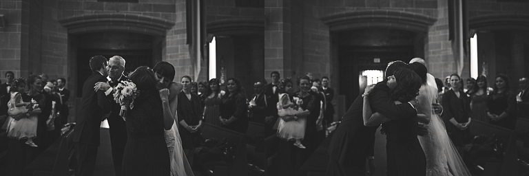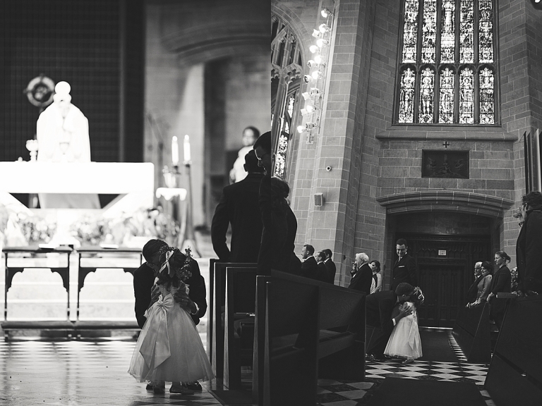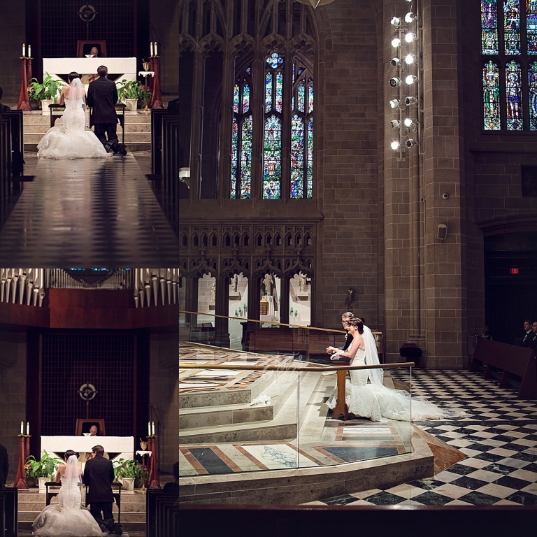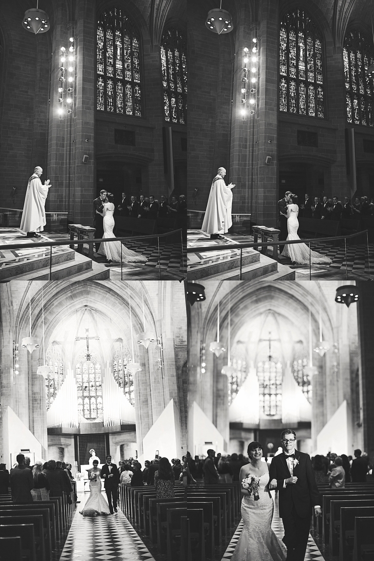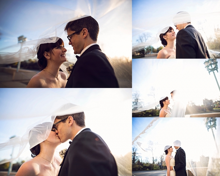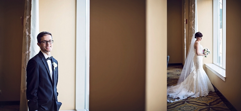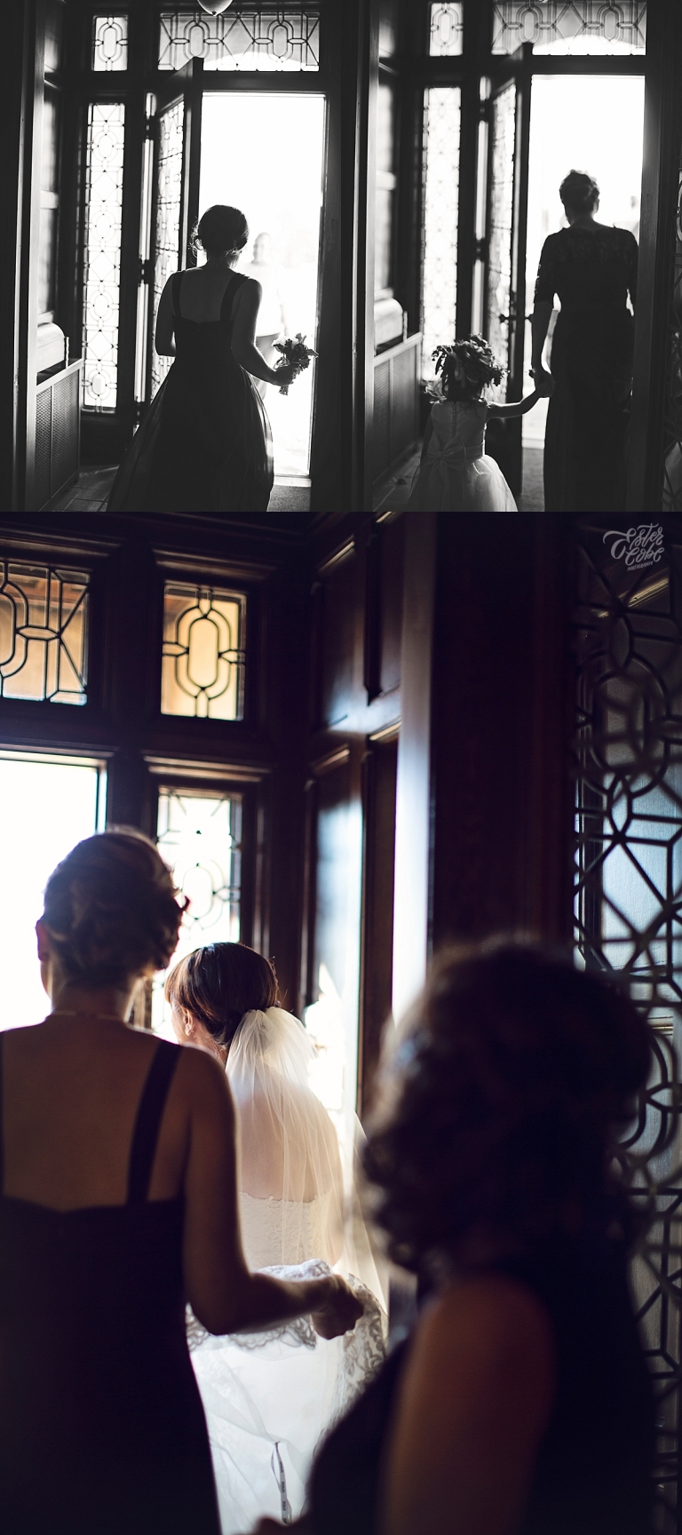 We first met via Skype, and Mel asked all the right questions. She knew what she wanted and we excitedly were a match! Several months later we met up on Belle Isle for a sunset engagement session where we saw first hand that Mel and Vinny had style and spark. Their love for Literature and history fueled their wedding day choices. We began our day with the couple at the historic Hilton Double Tree in Downtown Detroit. Each in separate rooms, with bridal prep in full swing. The guys doing a traditional toast, and the ladies finished makeup and helping Mel into her beautiful lace gown. It was a chilly November day, and the skies were bright blue which made the Cathedral of the Most Blessed Sacrament glow as the sunset just after the ceremony. We visited a few favorite places in Detroit for photographs and back to the Hilton for their wedding reception in their historic ballroom. Friends and family surrounded this couple with their love and well wishes. Various books, and vases of flowers decorated the room. Vinny’s small niece danced in the wild light show provided by the DJ, and made everyone snap a photo as she twirled in her special dress with the bride.