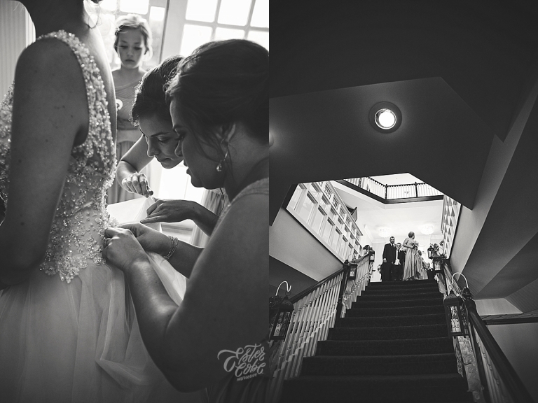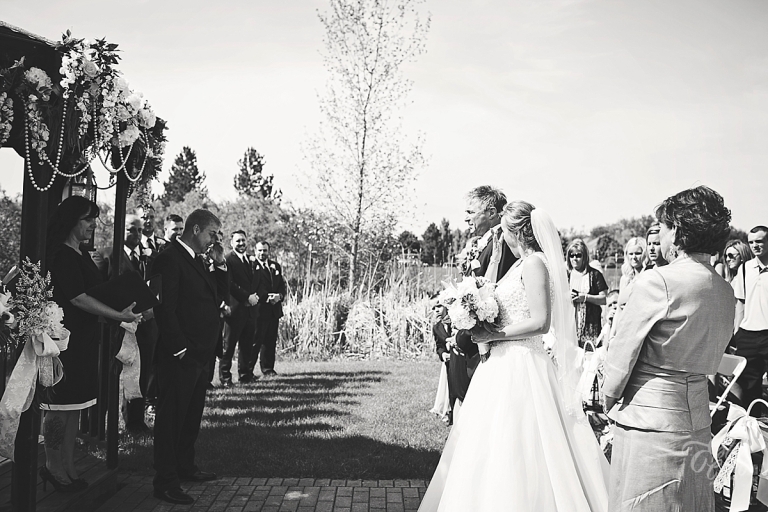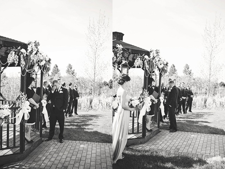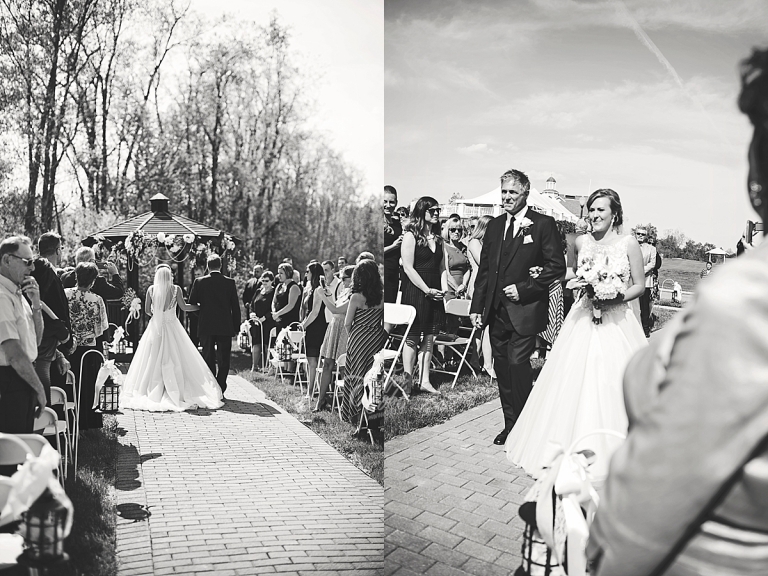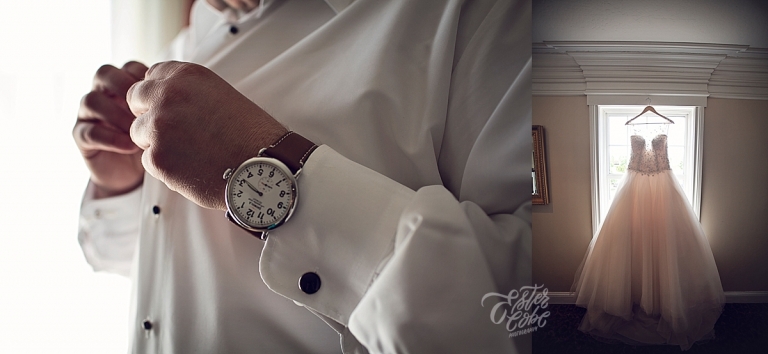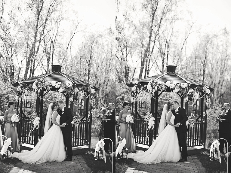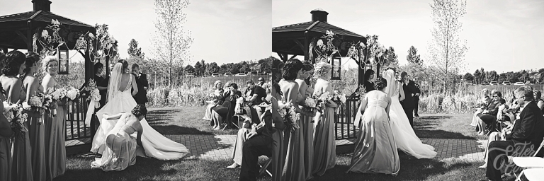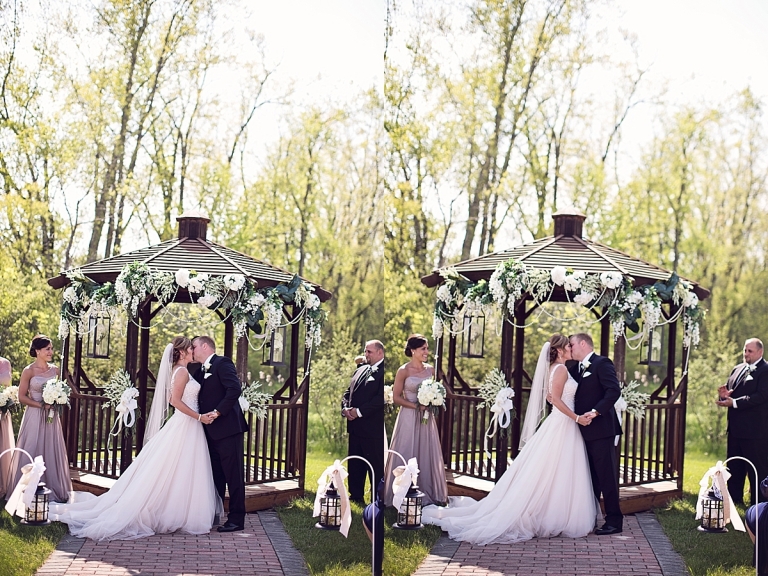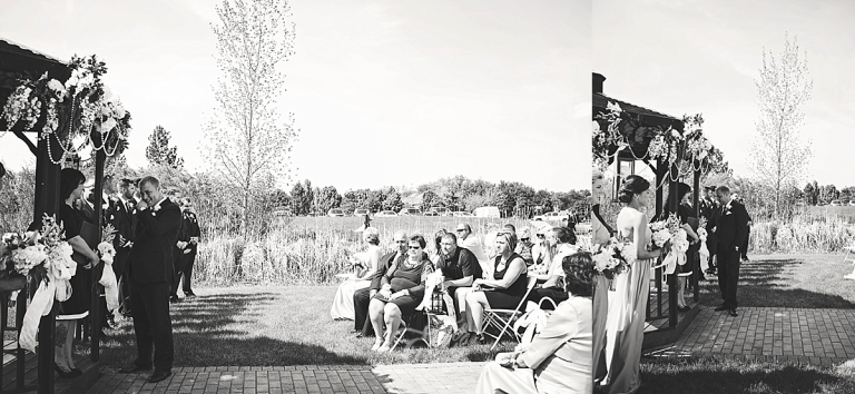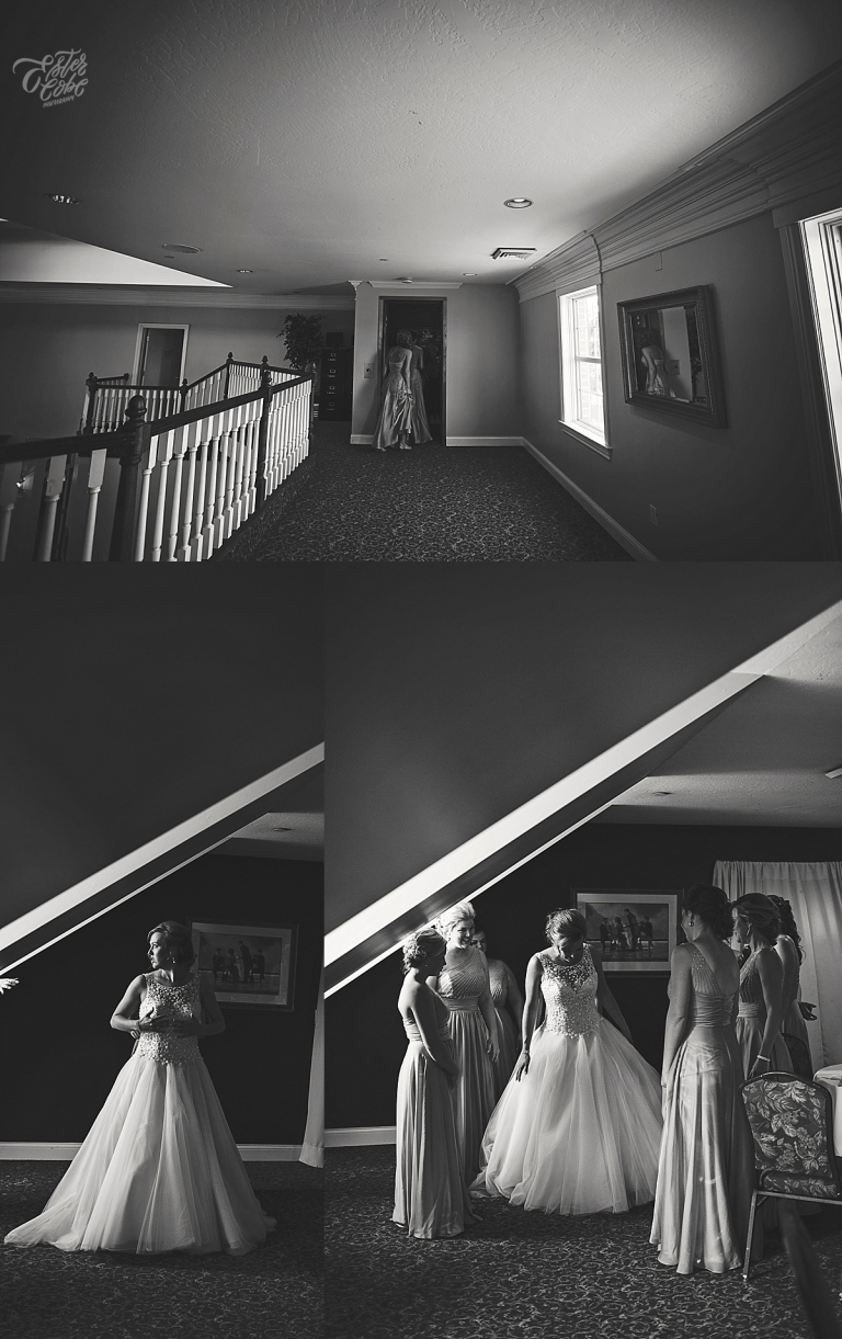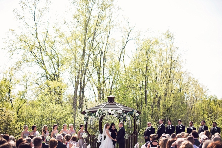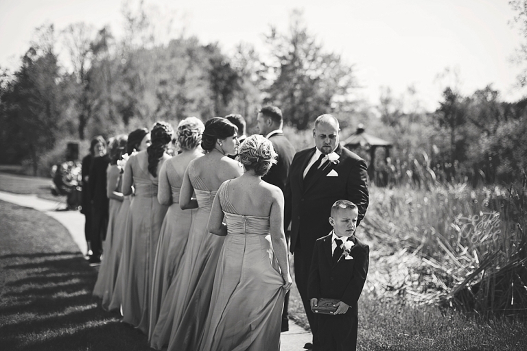 Jason loves Melanie and Melanie loves Jason. They exuded love for one another. The day began with surprise presents for one another. Melanie had gotten Jason a sharp Shinola watch and Jason surprised his bride to be with a beautiful diamond band to go along with her engagement ring and wedding band. Everyone in the room smiled as she opened the package. Melanie and Jason were surrounded with the love of friends and family. Everyone caring for their hearts and trying their best to ensure the bride and groom had a flawless day. The champagne dresses had a splash of sparkle, which played off of the sparkle on Melanie’s Blush gown. The weather was perfect for an outdoor May wedding in Michigan. Tears of happiness came for Jason as he waited for his beautiful bride to walk down the aisles towards him. I remember being overwhelmed with love for this couple as I saw the love between them throughout the day. I cried while I edited the ceremony a week later! These two <B