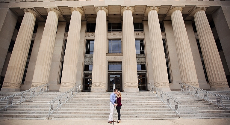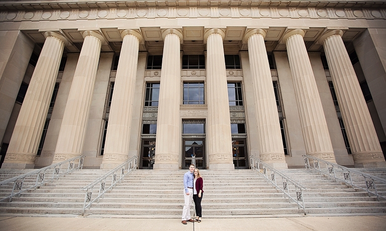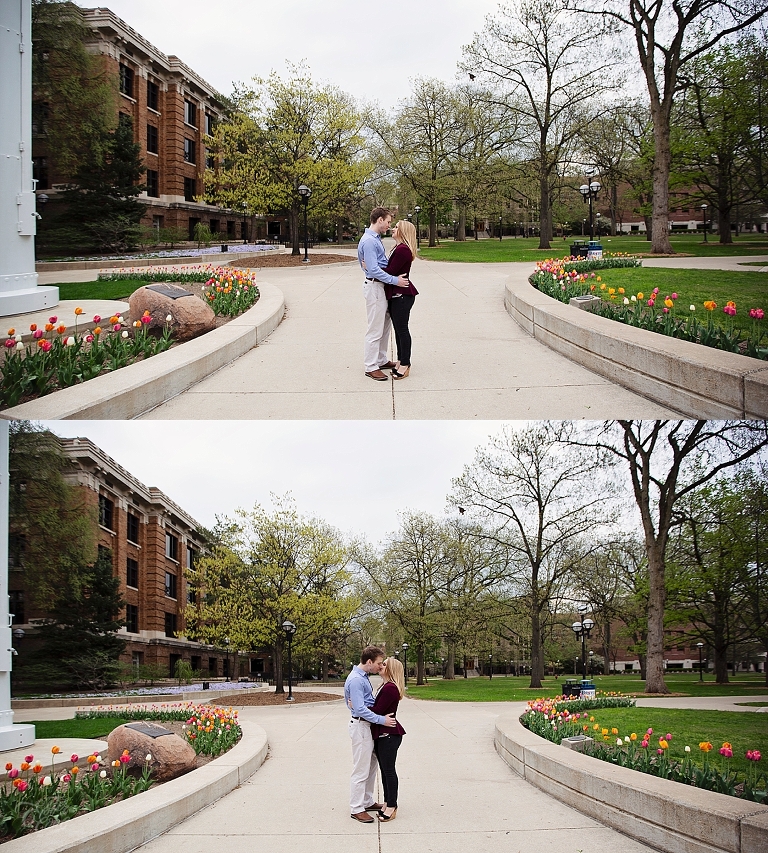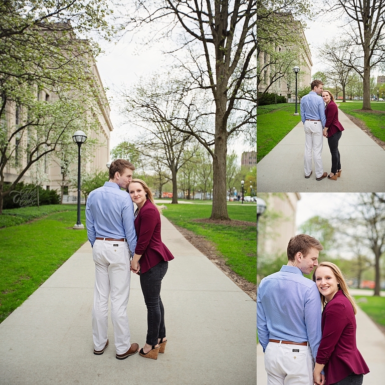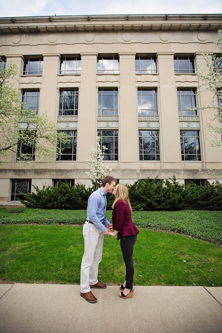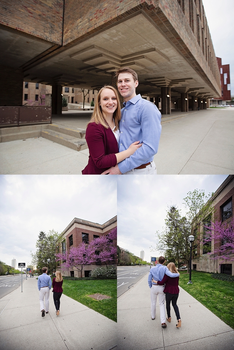 They met in high school. Brandon was a year ahead of Emily. Friends brought them together, but Emily made the first move… of course there are always two sides to each love story as Emily assured me Brandon would dispute that! They both attended U of M, and spent so much time on campus… so an engagement session on campus seemed perfect! They walked about to their most frequented spots and told me little stories and reminisced about their time at school. Emily and Brandon both wanted photographs at their schools of study and it was fascinating to hear the memories from their days at school. I just love when couples share their love stories. All the feels <3