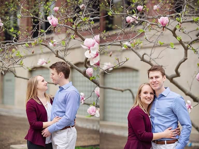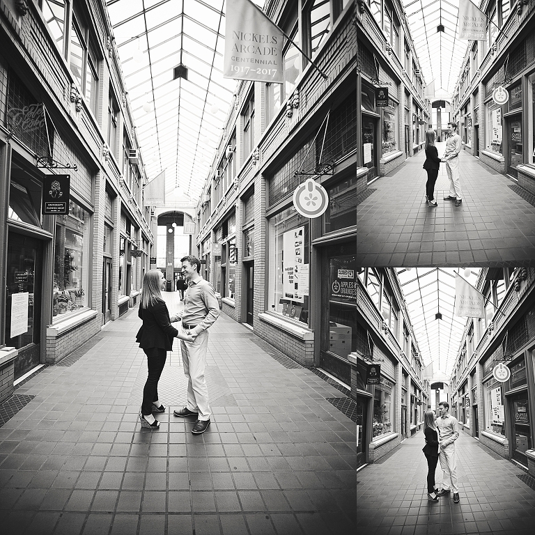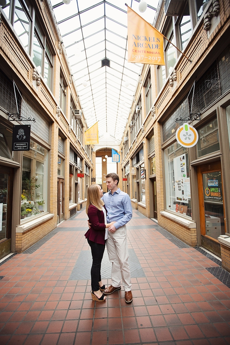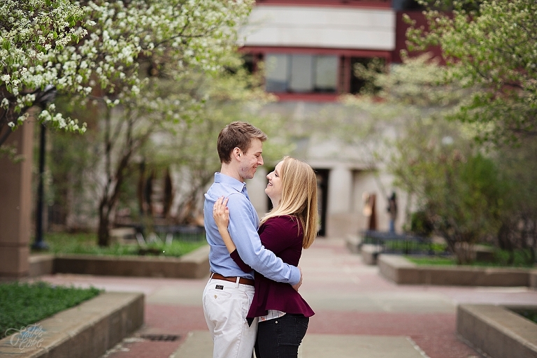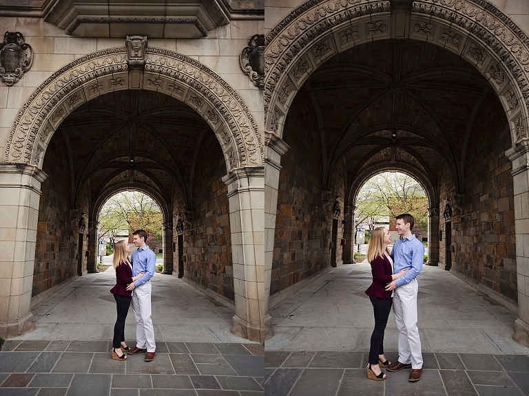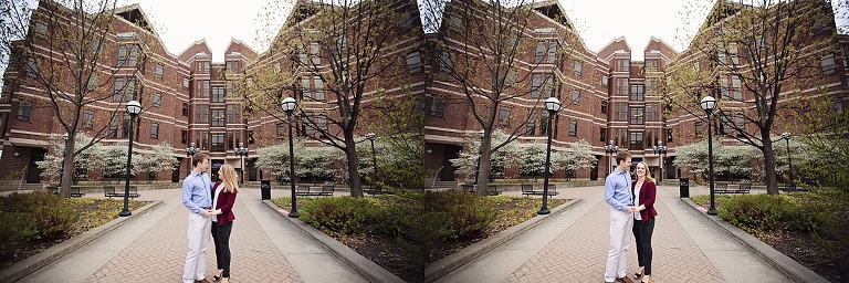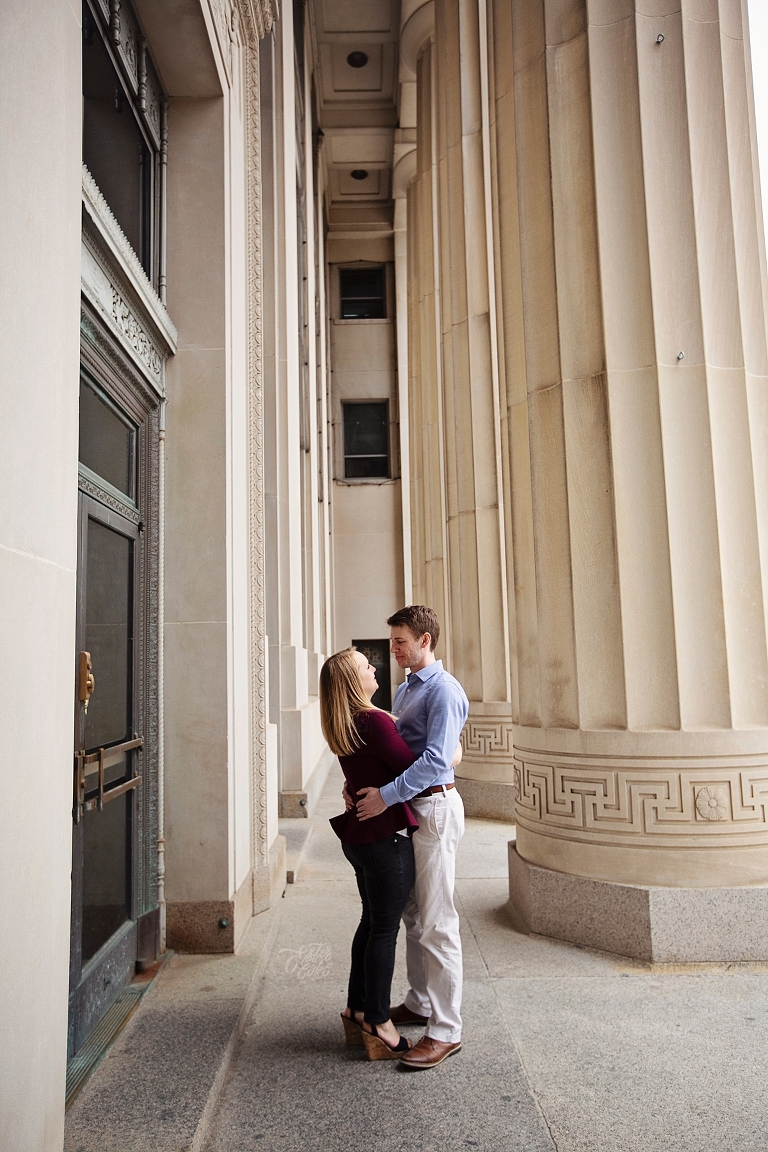They met in high school. Brandon was a year ahead of Emily. Friends brought them together, but Emily made the first move… of course there are always two sides to each love story as Emily assured me Brandon would dispute that! They both attended U of M, and spent so much time on campus… so an engagement session on campus seemed perfect! They walked about to their most frequented spots and told me little stories and reminisced about their time at school. Emily and Brandon both wanted photographs at their schools of study and it was fascinating to hear the memories from their days at school. I just love when couples share their love stories. All the feels <3