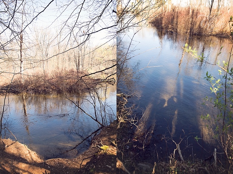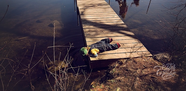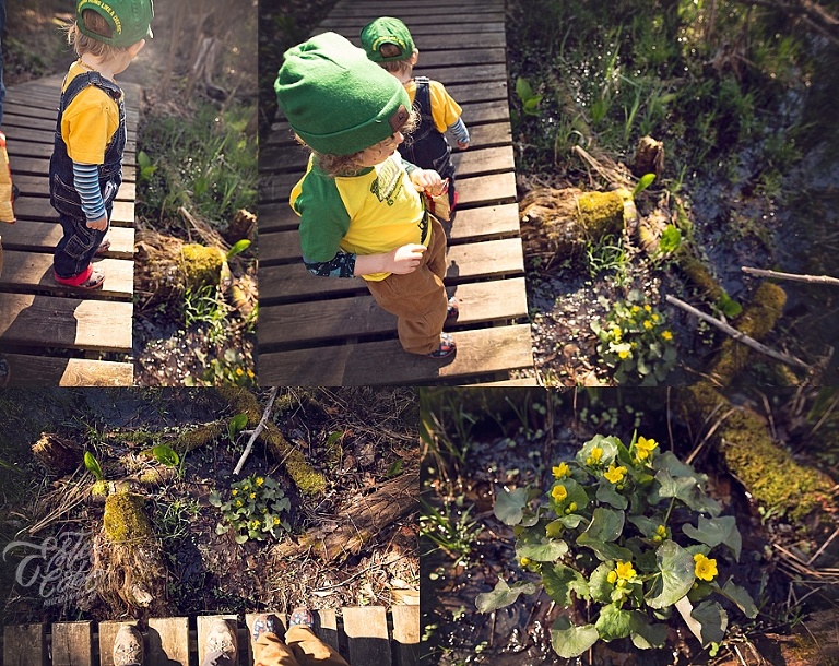 Our weekly “Hike” or nature walk with my littles has been going on for almost two years. We meet up every Monday and walk with other families through Hike it Baby. Not every week goes smoothly. Sometimes we get off to a rocky start. This April 17th walk isn’t my favorite as far as killer images, but it is very truthful. Life is messy. Kids aren’t always happy. My little Finley is pleased as punch to be out and exploring nature. We talk about all things along the way. We are big on organic learning. We try to keep the walk pretty educational, unless a mommy wants to talk to another mommy – lol. Anyhow – here we see Finley loving the walk. Then we see Leighton sitting in the middle of the trail refusing to go on… right at the start of the walk too. So mom had to carry all 38 pounds of Leighton. It didn’t last long. We found the FIRST FLOWERS of spring, the Marsh Marigold, and that made the whole walk more de-LIGHT-ful. Leighton walked with Finley. We explored and suddenly had so much to talk about along the way. Thank goodness! I had him in my Onya carrier… but still. He is heavy! The rest of the walk was all about the dock for the kids, and after playing on the dock for twenty minutes we took the shortcut and did a nursing break before heading to the cars. It was so good to get out. I didn’t shower, and had a toddler meltdown on the trail… but so worth it.
