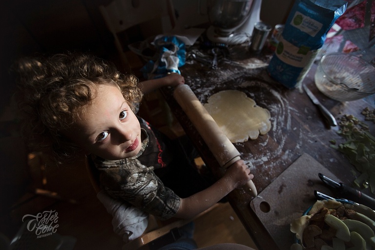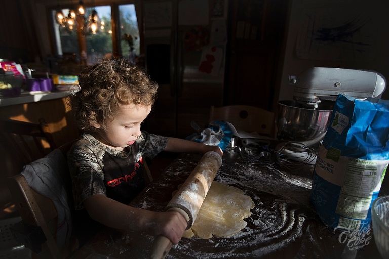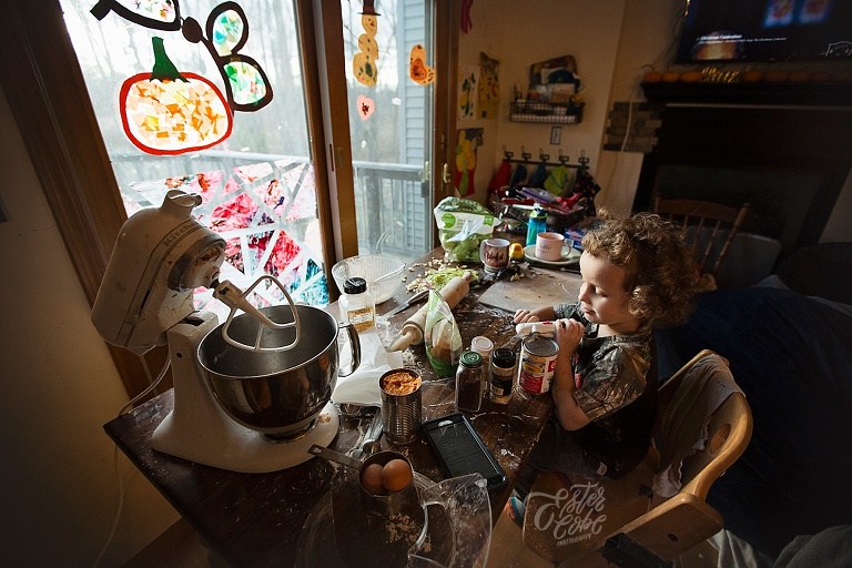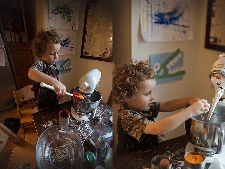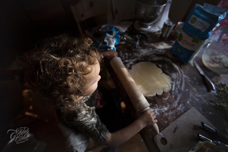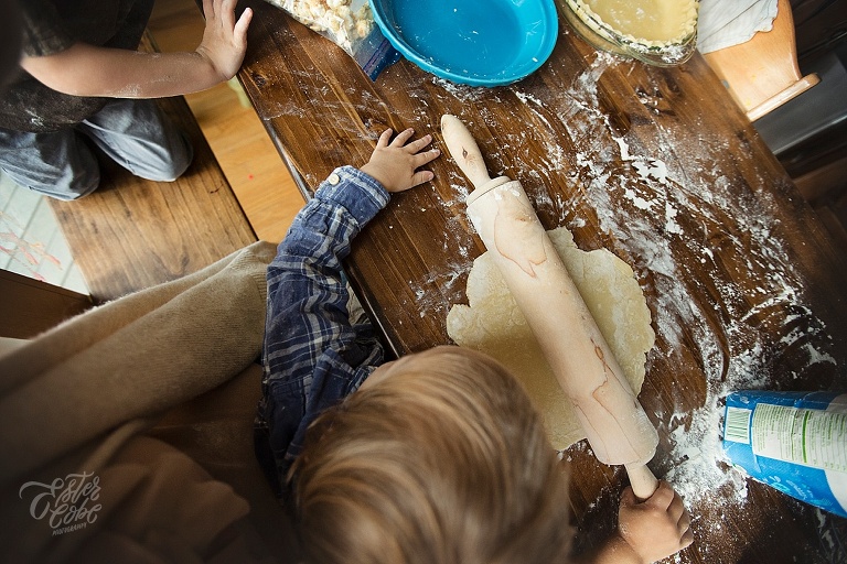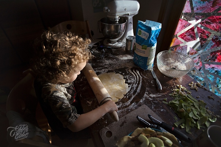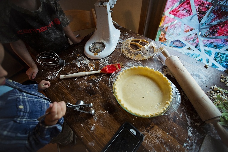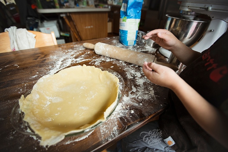 Leighton made our pumpkin and apple pies with a little help, LOTS of time and patience.