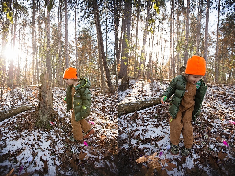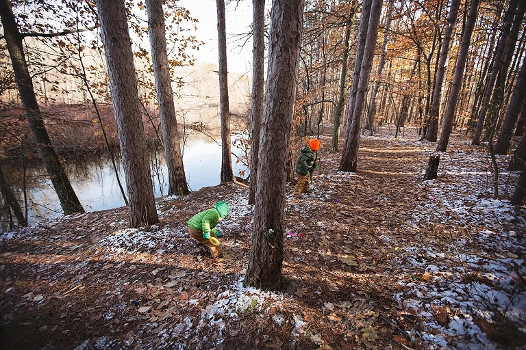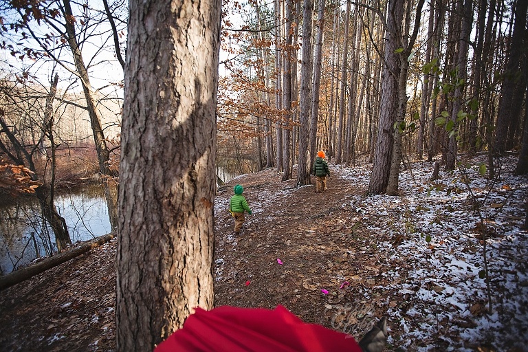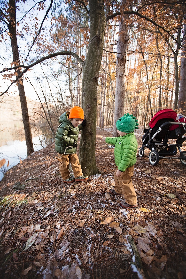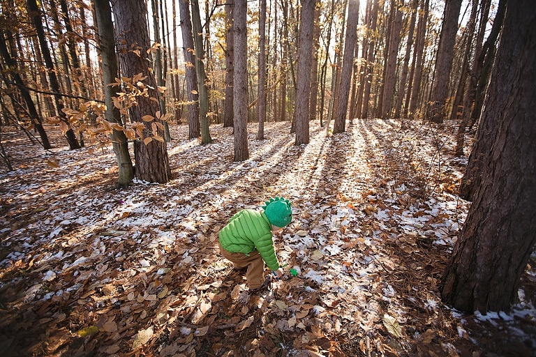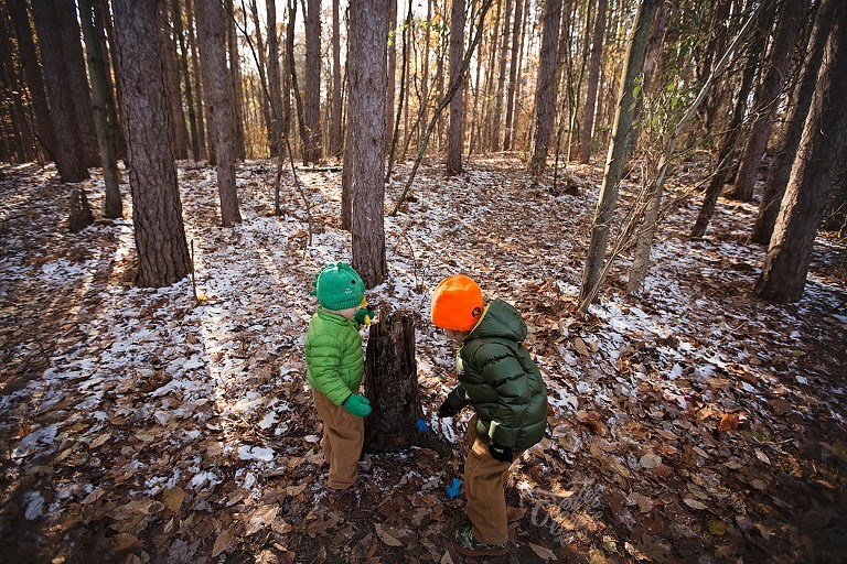 My sweet boys and I venture out on Monday mornings to “Nature’s House” a name given to the nearby state park by my oldest son. This Monday when we pulled into the lot he was extra not interested in joining in on the walk. He told me he wanted to go home or to stay in the car. Finally he decided he would come IF the stroller could be used so he could just relax. After much fussing and whining we began our little stroll. Little did he know we were on the hunt for wild turkeys for Thanksgiving. Hidden inside my snack bag was a large collection of feathers from making plump and perky turkeys during craft time. I know, you would think they would catch on… but they didn’t. I sprinkled feathers about while they weren’t looking… and sometimes right in front of them. The poor lonely stroller wasn’t used until Finley broke down from exhaustion. (two year molars and sleepless nights, yo) My oldest loved it. He couldn’t let a single one be left. He was a hugely successful turkey FEATHER hunter. Yes, I know… turkeys do NOT have fantasy colorful feathers in REAL life. This was magical though.