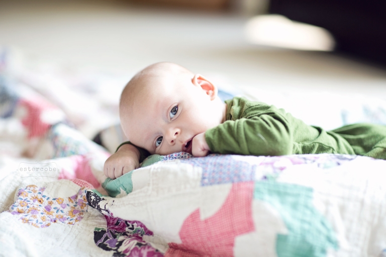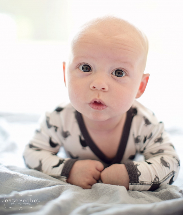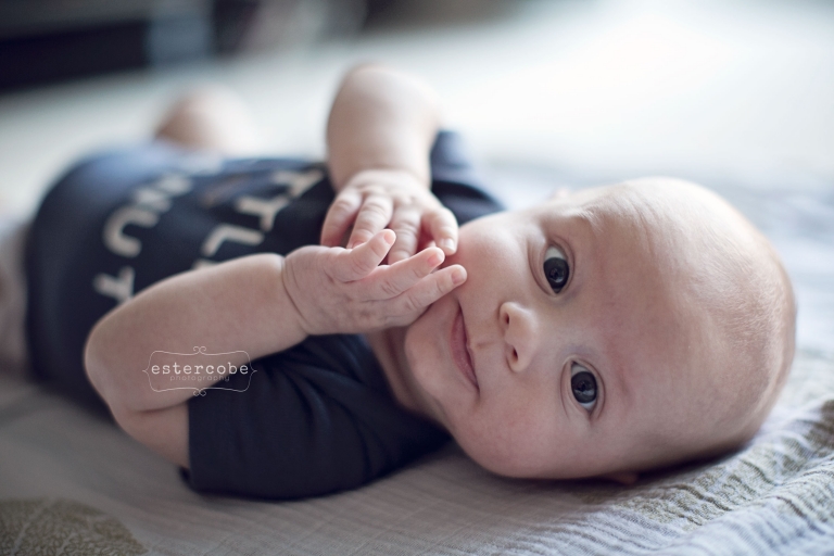 Multitasking and time management are skills this mommy could definitely get better at. I’m one of those stop and smell the roses types… so I talk, smile, cuddle and take pictures of this sweet boy whenever I can! Our little Leighton is such a joy and a blessing {Sigh & Swoon}. He has provided a huge change in our lives in more ways than I could have imagined but all well worth every moment spent looking into his eyes and watching him grow. This month he grew a TON and has so many new skills! He smiles at familiar faces and even talks to us when he gets excited. He holds my arms and rests his sweet head on my shoulder… ahhh… LOVE! I truly didn’t know how much my parents loved me until I met him. I feel so loved. I’m wrapped around those chunky little fingers and quite content!