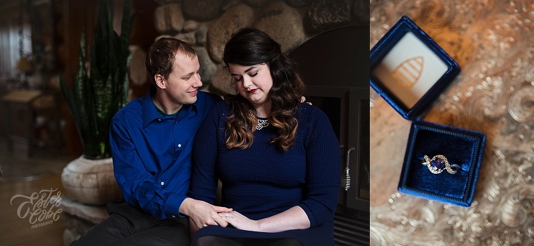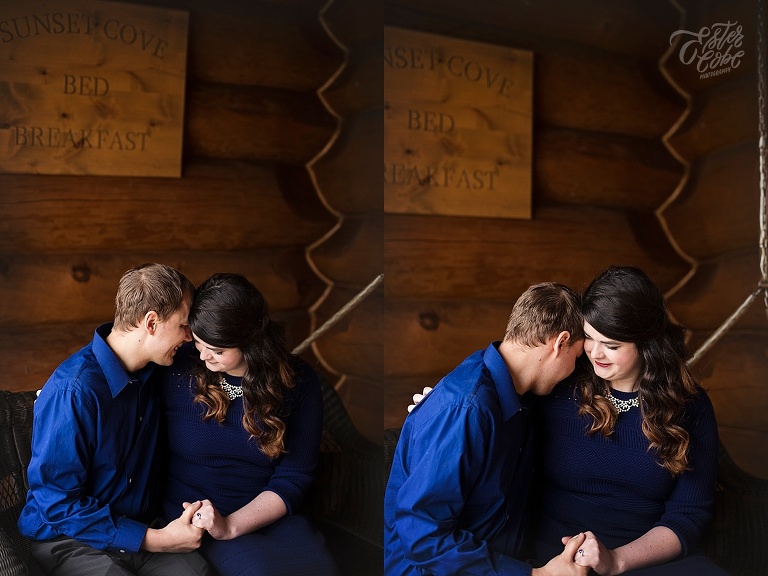 We met in mid November at Sunset Cove Bed and Breakfast to capture a peak into their romance at the site of their wedding celebration. Christmas was going up at the inn and a crackling cozy fire made the space super inviting. Ellie and Tyler are the snuggle-ist of pairs. They naturally cozied into each other and whispered sweet and happy thoughts.. because LOVE!